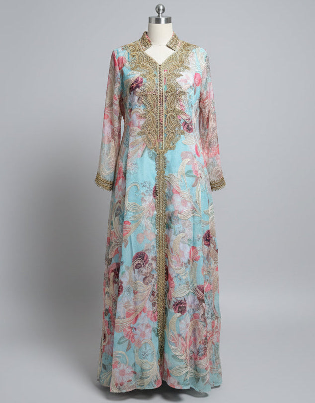 The intricate flower embroidery design adorns the garment with delicate artistry, creating a refined aesthetic that elevates any occasion. Each stitch reflects meticulous craftsmanship, transforming this abaya into a statement piece that balances modesty with sophisticated style.